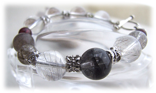 | ◆ブラック&ホワイト&シルバールチルクォーツ&ラブラドライト&ガーネット◆ |