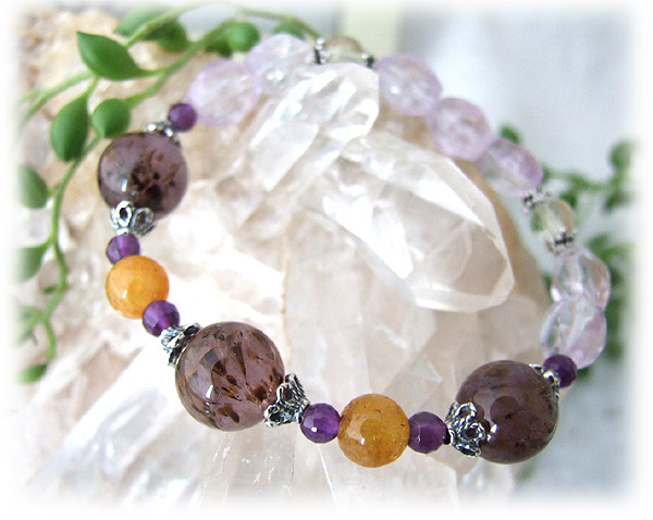 | ◆アメジストカコクセナイト&アメジスト&ゴールデンベリル&ラベンダーアメジスト&リビアングラス◆ |