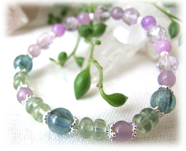| ◆ブルーグリーンカヤナイト&グリーンアクアマリン&ヴァイオレットカルセドニー&スギライト&アメジスト◆ |