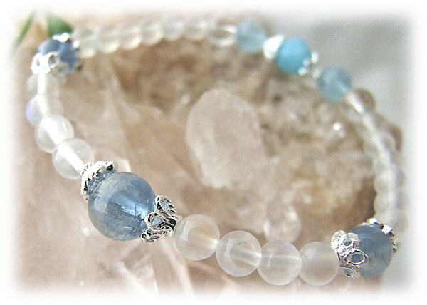 | ◆カヤナイト&ラリマー&ブルームーンストーン(ペリステライト)&アクアマリン&トパーズ◆ |