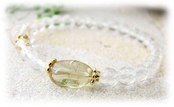 オーロ ヴェルデ クォーツとメタモルフォーセスを 1石ずつ使ったブレスレットです。