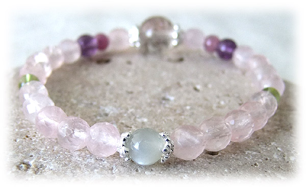 セイクリッドセブン 10.5mm ルビー 5mm アメジスト 6mm ペリドット 4mm ムーンストーン 6mm ローズクォーツ 6mm Silver925パーツ ゴム仕様 手首サイズ(内径) 16cm サイズ変更は無料でお受けしますので ご希望の内径サイズを備考欄にお書き添えくださいませ。
