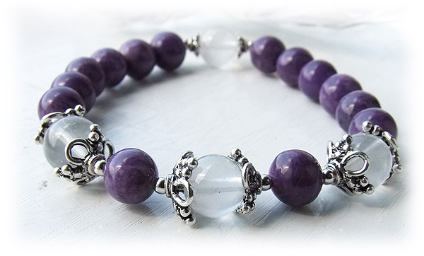 ホワイトファントムクォーツ 9mm タンザニア産チャロアイト 8mm ゴム仕様 Silver925 パーツ 手首サイズ(内径) 15.8cm