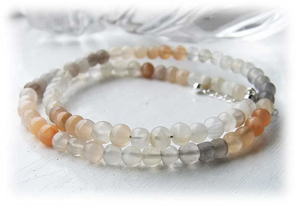 色とりどりのミックスカラーのムーンストーンを 2連で着けていただけるブレスレットを紡ぎました。