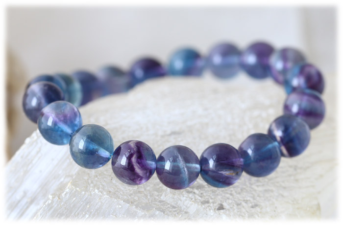バイカラーがとても美しいフローライトのブレスレットです。